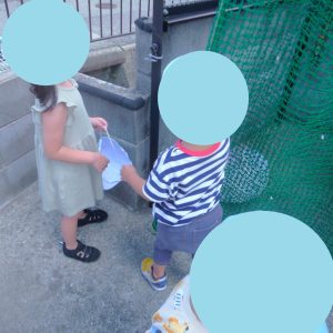 ごみ箱の位置を一緒に確認して、「あんなところにもごみが落ちてる!」と袋の中に拾い集めていきます🗑️